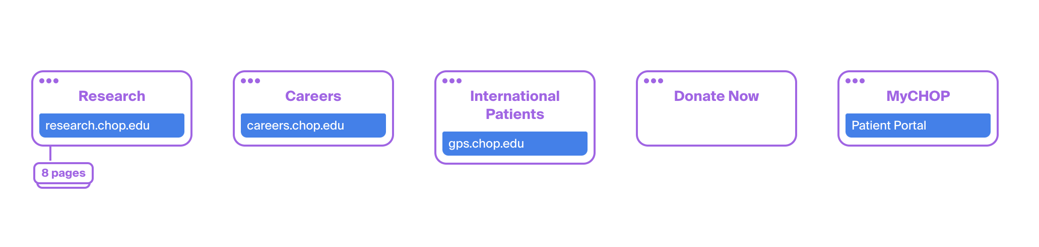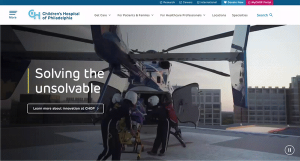 Children’s Hospital of Philadelphia (CHOP) is an award winning pediatric healthcare system and research institution in Pennsylvania. CHOP strives to be the world leader in the advancement of healthcare for children by integrating excellent patient care, innovative research, and quality professional education into all of its programs. This project was for a redesign of their consumer facing websites.
